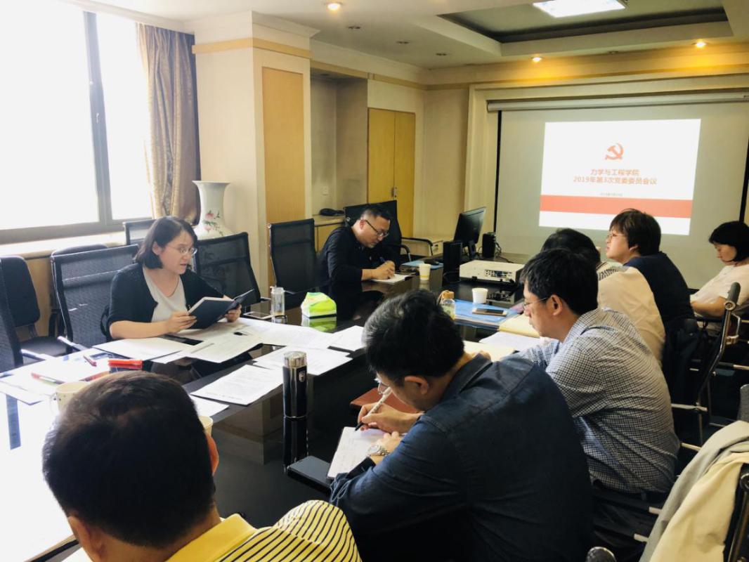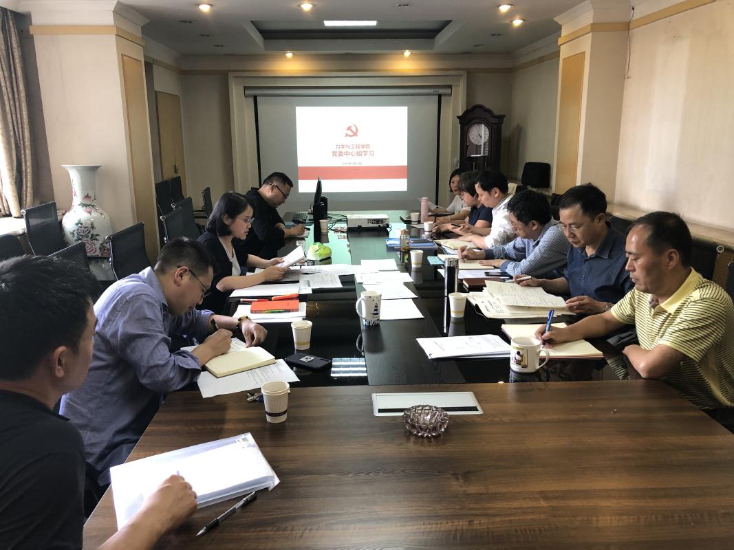 5月17日16:00,力学与工程学院2019年第3次党委中心组会议在九里校区1号综合楼222会议室召开。会议由学院党委书记栗民主持并主讲,学院全体领导干部、党委委员、教职工党支部书记、系主任和综合办主任、人事科研秘书、党务秘书等参加学习。