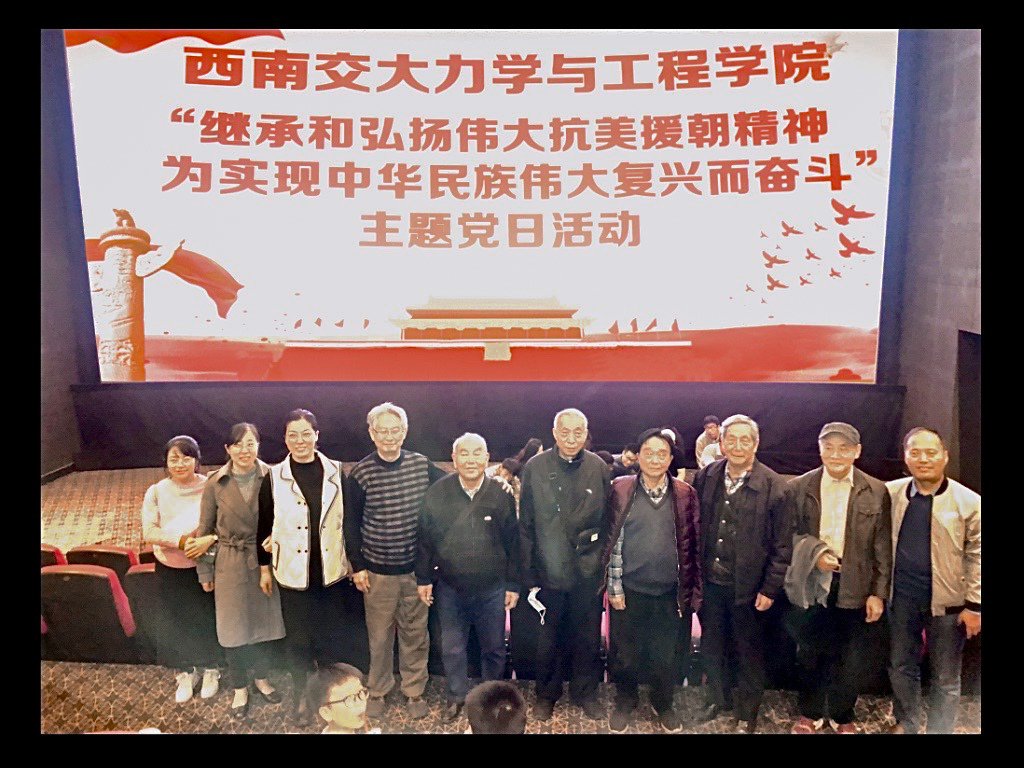 为深入学习习近平同志在纪念中国人民志愿军抗美援朝出国作战70周年上的讲话精神,20201030日,力学学院机关及退休教职工党支部开展“继承和弘扬伟大抗美援朝精神,为实现中华民族伟大复兴而奋斗”主题党日活动,集体观看了抗美援朝主题电影《金刚川》