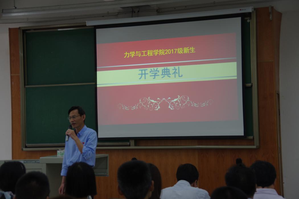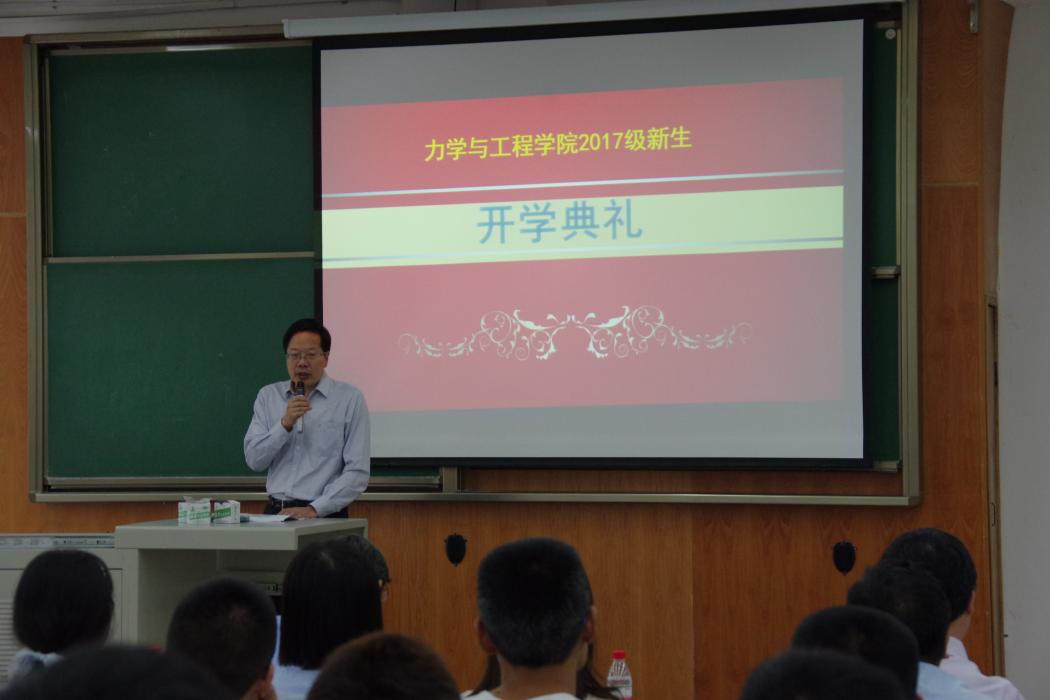 首先是学院党委金建明书记对2017级新同学表示欢迎,并代表学院全体教职工表态:同学们的道路并不会孤单,力学院的全体教职工竭尽所能陪伴大家学习、成长。同时提醒新生进入大学新的征程,不同于高中,要学会改变自己,从各方面来适应现在的新环境,更好地提升自己的能力,相信在大学四年的学习生活中打下的基础会为以后的学习或者工作提供源源不断的动力。