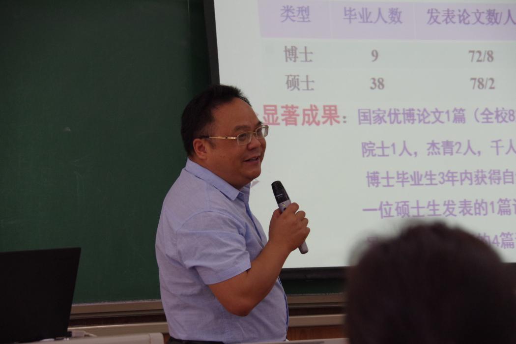 紧接着副院长李映辉教授向同学们介绍了学院的基本情况,对师资力量以及科研能力进行了简单的说明,以及近年来我院取得的各项科研成果及拥有的科研平台,希望同学们在大学认真学习,刻苦专研,一定要转变上大学以后就轻松的错误观念。