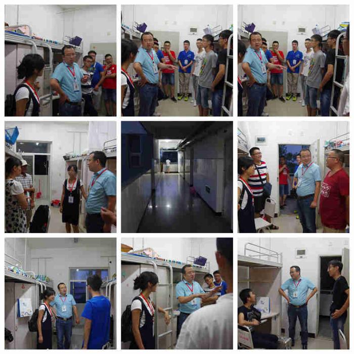 虽然夜幕已经降临,但是我们学院的领导们依然放不下我们学院的新生力量,去到他们的寝室问询他们的情况,希望能为他们解决难题。
