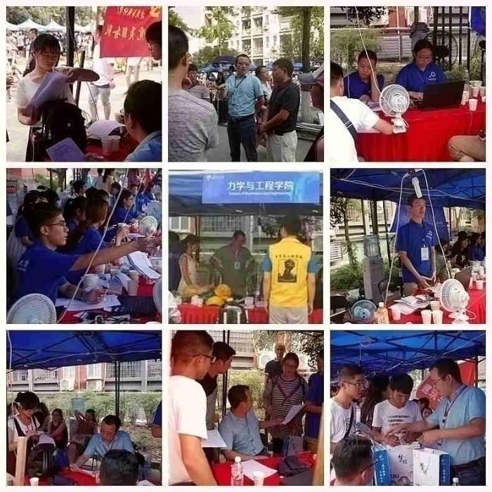迎新点的学长学姐们也忙碌在迎新的前线,虽然迎新点的环境并不尽如人意,但他们没有丝毫怨言,热心的为新生们解答。我们的学工组组长张军琪老师也心疼我们的学长学姐们,给我们借来了几台小电风扇稍稍缓解了夏日的燥热。