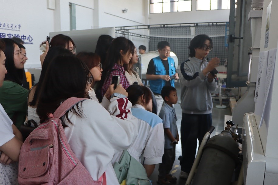随后,三院师生前往力航学院飞行器工程实验中心,学院文化大使团成员为大家讲解科研常用的实验设备,如小型风洞、飞行器模拟装置等,并在安全员的指导下进行体验驾驶飞行器,享受飞行器驾驶的体验。