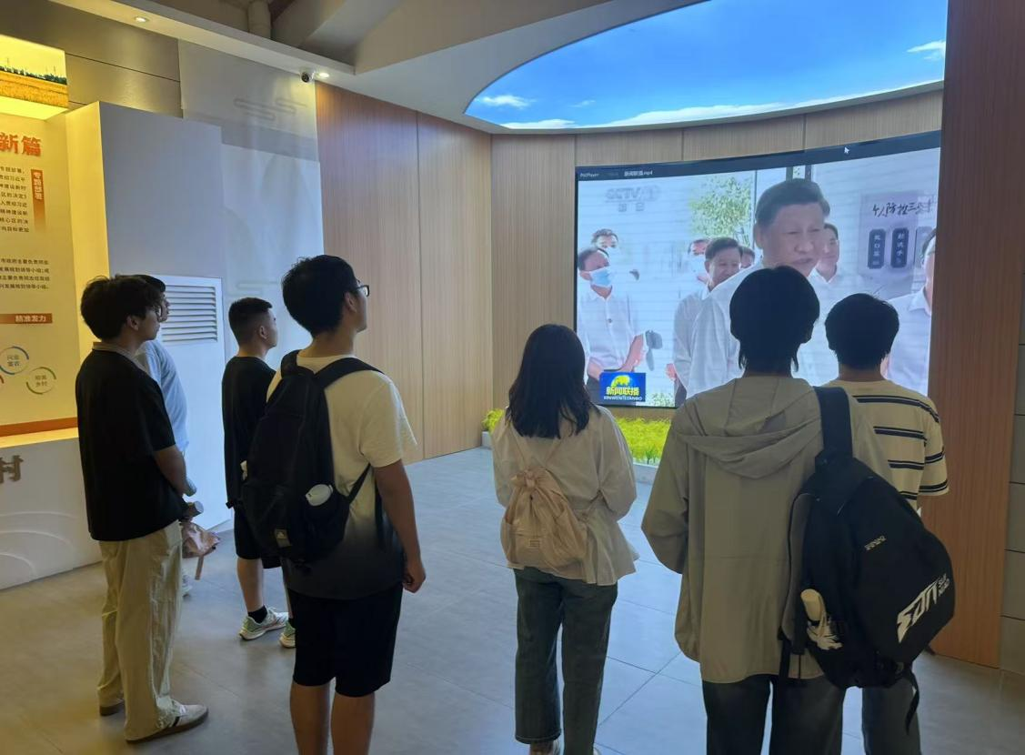 实践队走进永丰村村史馆,在“永丰吨粮田”展区聆听村干部方言讲解水稻增产科技。队员们将“暗化催芽”、“侧深施肥”等专业术语翻译成普通话笔记后赠与讲解员。在习近平总书记考察永丰村一周年照片墙前,队员们用普通话朗诵粮食安全金句,体悟“把饭碗牢牢端在自己手中”的时代精神。之后队员又观看了习近平总书记考察时影像记录,学习习近平总书记在田间地头发表的重要精神指示。“作为力航学子,我们要用科技创新无人机助力守护永丰良田!”队员李天意在参观后郑重表示。