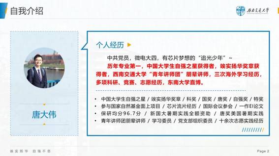 “我叫唐大伟,一个有科研梦想的追光少年。”简单的一句话,便拉近了唐大伟学长和我们的距离。