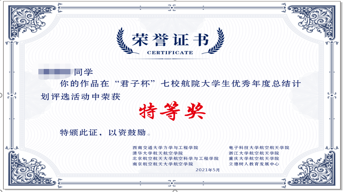 2021年2月1日至28日,beat365官网力航学院联合清华大学、浙江大学、北京航空航天大学、南京航空航天大学、电子科技大学、重庆大学等校航院以及学校立德树人教育发展中心联合举办了“君子杯”七校航院大学生优秀年度总结计划评选活动,引导大学生们“慎独”和“自省”,养成撰写年度总结计划的好习惯。