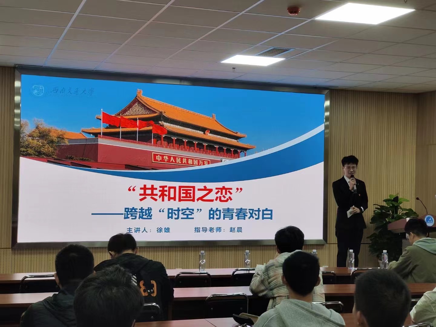 本次活动邀请《共和国之恋》讲演团为全院师生带来一场视听教育新体验,力航学院党委书记栗民,大学生文化素质教育基地副主任黄原,《共和国之恋》讲演团指导老师赵晨,苹果合唱团指导老师安晟斐出席活动。