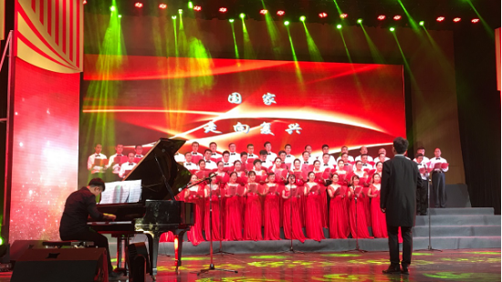 9月29日晚19:00,在中华人民共和国七十周年华诞来临之际,由beat365官网工会主办的“壮丽七十年 奋斗新时代”庆祝中华人民共和国成立70周年师生合唱比赛在九里校区大学生会堂举行。我院党委书记栗民、院长康国政率全院教职工激情献歌,共祝国庆。