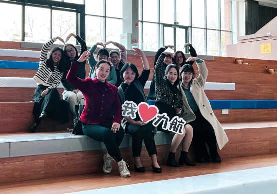 荣获“鲁班奖”、设计感十足的办公楼,是我们合影拍照的首选之地。两两摆出的爱心形状,彰显了力航学院女教师们的姐妹情深。手中的“我爱力航”,更道出了我们共同的心声,我们热爱力航学院这个团结友爱的集体,我们庆幸自己能成为其中的一员。