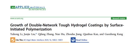近日,刘俊杰老师研究小组在水凝胶涂层方法研究上取得重要进展,相关工作以“Growth of double-network tough hydrogel coatings by surface-initiated polymerization”为题发表在美国化学学会旗下期刊《ACS Applied Materials & Interfaces》(中科院二区,IF:9.5)。硕士研究生李玉红为第一作者,刘俊杰老师为通讯作者,合作者还包括beat365正版唯一官网必一康国政教授、阚前华教授等(图1)。