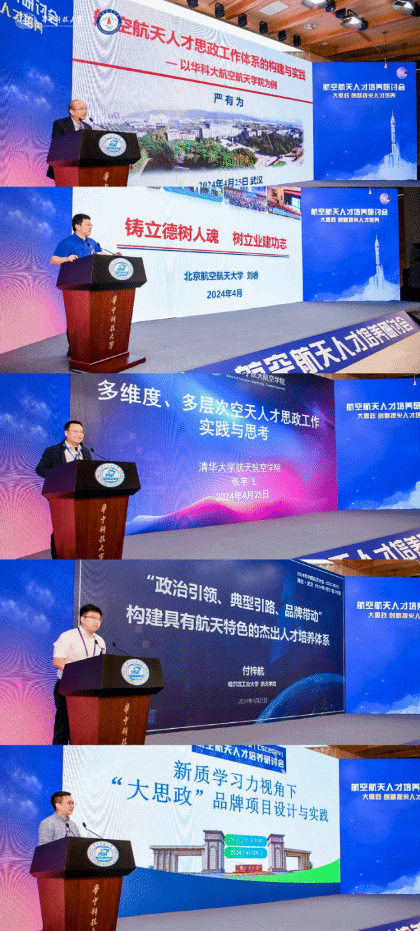 在大会主旨报告环节,华中科技大学航空航天学院党委书记严有为作了题为“航空航天人才思政体系的构建与实践”的报告,北京航空航天大学宇航学院党委书记刘睿作了题为“铸立德树人魂,树立业建功志”的报告,清华大学航天航空学院党委副书记张宇飞作了题为“多维度、多层次空天人才思政工作实践与思考”的报告,哈尔滨工业大学航天学院党委副书记付梓航作了题为“‘政治引领、典型引路、品牌带动’ 构建具有航天特色的杰出人才培养体系”的报告,beat365正版唯一官网必一党委副书记孔祥彬作了题为“新质学习力视角下大思政品牌项目设计与实践”的报告。