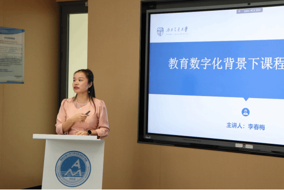 在主题分享环节,教育部课程思政教学名师、马克思主义学院李春梅教授做了题为“教育数字化背景下的课程思政建设”的精彩分享。她从教育数字化背景概述、课程思政的必要性与重要性、课程思政的新内涵等三个方面,强调了教育数字化转型背景下做好课程思政的重要性和紧迫性,分享了如何利用数字技术推动思政课教学改革的思路。