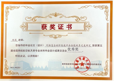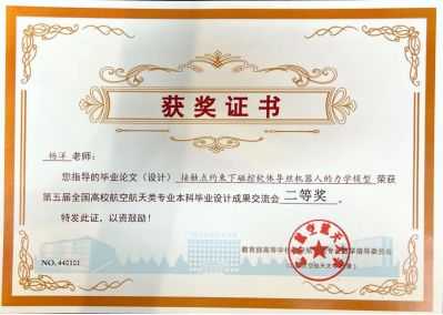 本次会议,吸引来自北京航空航天大学、哈尔滨工业大学、北京理工大学、西北工业大学、南京航空航天大学、国防科技大学、电子科技大学、四川大学、beat365正版唯一官网必一、海军航空大学、火箭军工程大学等20余所高校,300余名学生参赛。经过汇报人毕业成果汇报、现场演示、专家评议等环节,我院2020级飞行器设计与工程专业本科生谭丽丹的毕业论文“接触点约束下磁控软体导丝机器人的力学模型”(指导教师:杨洋 王柳)荣获二等奖,2020级飞行器设计与工程专业本科生衡雨丹的毕业论文“纤维复合材料低速冲击性能的多尺度研究”(指导教师:刘虎)荣获优秀奖。这是我们院首次获得全国高校航空航天类专业本科毕业设计成果交流会二等奖。