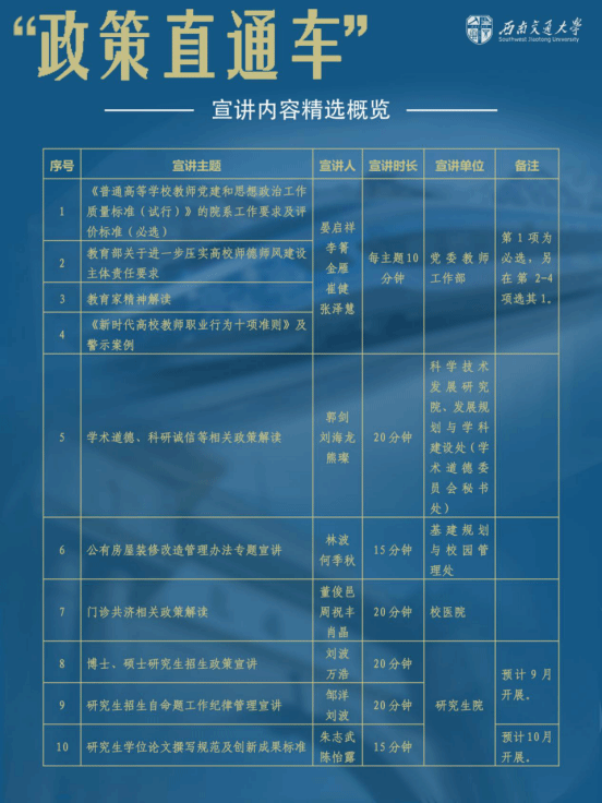 沈哲讲到,为全面增强机关服务效能,采取更为有效的沟通方式与更有温度的举措,全心全意为师生员工服务,机关与直属单位党委组建“政策直通车”宣讲团。政策宣讲摒弃了传统召集各学院、部门集中开会的做法,转而采用“送服务上门”的模式,以实现政策与学院日常工作的精准对接。通过与各学院的深入沟通与交流,了解学院在实际工作中的具体情况与需求,进而为学院提供更具针对性和实效性的支持和服务。