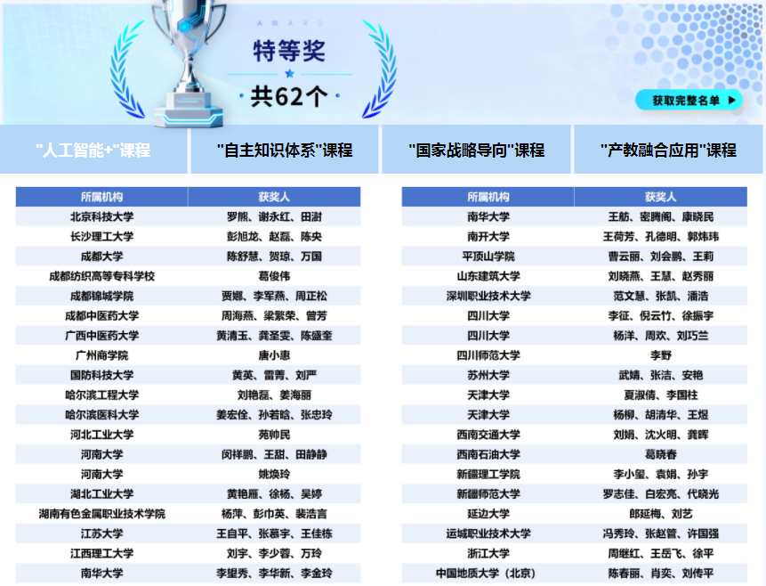 1)第六届全国高校混合式教学设计创新大赛一等奖(2024年);