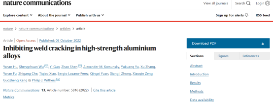 深入研究发现,细晶带内部的细小等轴非枝晶是以母材中高温稳定相经异质形核而成,适宜的温度梯度和熔池扰动共同决定了细晶带形成于HAZ区域。调节工艺参数能够改变细晶带的宽度,但无法完全消除细晶带。基于高分辨X射线原位多尺度关联成像技术,发现影响7050铝合金接头性能劣化的本质因素,探明了细晶带软化及沿晶失效机制,进而提出了一种全新的“激光扰动+磁场脉冲”联合制造策略,通过调控细晶带的区间分布,大幅提升了激光熔焊接头的强韧性,高于搅拌摩擦焊。相关成果以题为“Inhibiting weld cracking in high-strength aluminium alloys”发表在Nature Communications上,第一作者为西南交大牵引动力国家重点实验室胡雅楠博士(现为beat365正版唯一官网必一讲师),通讯作者为吴圣川研究员(康国政团队,共同作者)、上海交大沈朝副教授(曾小勤团队,共同作者)及曼彻斯特大学Philip J. Withers两院院士,完成单位还包括西南交大(虞雨洭硕士生,张旭教授)、中科院金属所(郭翼研究员)、英国曼彻斯特大学(钟向莉高工)、牛津大学(Alexander M. Korsunsky教授,Sergio Lozano-Perez教授)、中科院上海光源(付亚楠研究员,肖体乔研究员)、中国航空制造技术研究院(车志刚研究员)和北京高能所北京光源(袁清习研究员)。