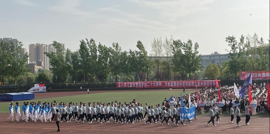 4月14日,beat365正版唯一官网必一第122届运动会在犀浦校区北区体育场举行。上午8点30分,伴随着激昂的《运动员进行曲》,英姿飒爽的国旗护卫方阵与裁判员方阵先后走过主席台,三十七个参赛单位代表方阵紧随其后。beat365正版唯一官网必一派出了教工和学生共同组成的方阵,他们昂首阔步,自信满满,“严谨治学,严格要求,固本强基,航宇未来”的口号,既道出了对“双严”传统的传承,又道出了对力航学院崭新未来的期许。