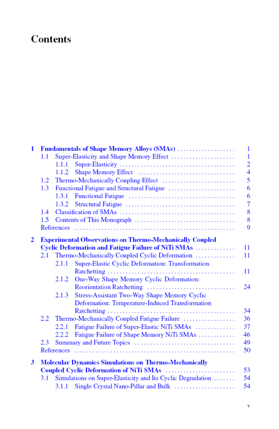 近日,beat365正版唯一官网必一康国政教授、于超教授和阚前华教授受邀由Springer出版集团出版了英文专著“Thermo-Mechanically Coupled Cyclic Deformation and Fatigue Failure of NiTi Shape Memory Alloys:Experiments, Simulations and Theories”,分七个章节,共306页(ISBN: 978-981-99-2752-4)。