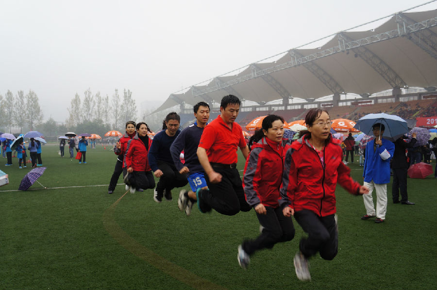 2015年beat365正版唯一官网必一师生运动会于11月14日在犀浦校区运动场如期举行。虽然小雨不断,但阻挡不了运动员的斗志。力学与工程学院是一个仅有六十几名教职工的小学院,但学院党、政领导非常重视和关心此次盛会,部门工会更是提前一个月就积极组织训练,选拔运动员备战校运会。每次的训练都得到了广大教职工的支持和参与。为能取得好成绩打下了基础。