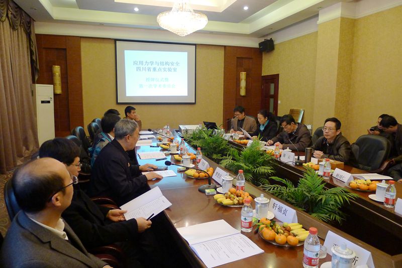 揭牌仪式后,冯西桥教授主持召开了第一次学术委员会会议。实验室特别顾问于俊崇院士致辞,学术委员会认真听取和审议了实验室主任康国政教授所作的《应用力学与结构安全四川省重点实验室2014年度工作进展与发展规划报告》、《开放基金管理办法和申请指南》,对实验室建设与发展相关问题进行了深入研讨。
