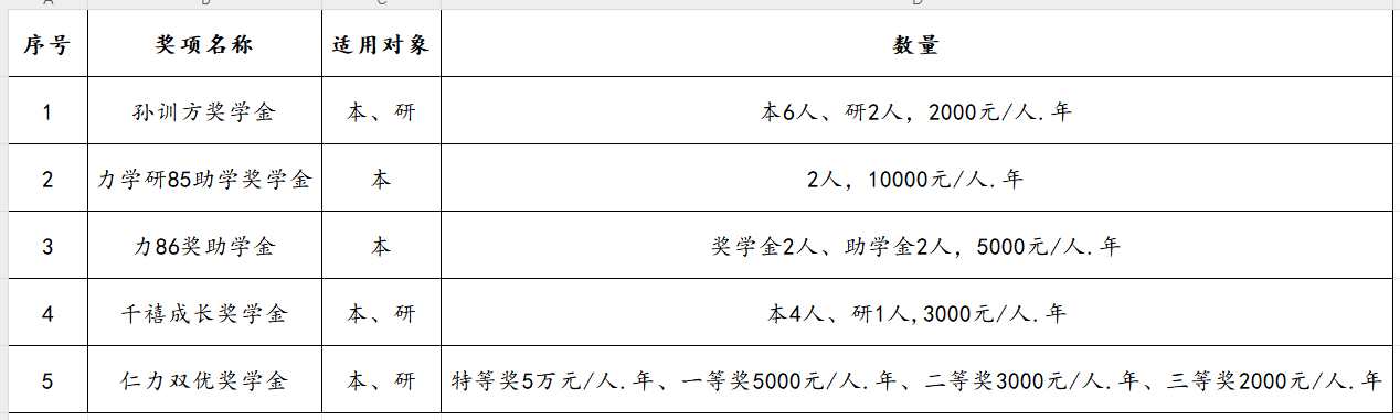 二、学院范围专项奖助学金