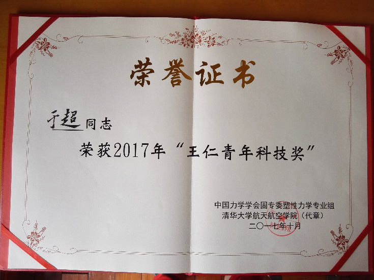 近日,在湖南长沙召开的全国塑性力学大会上,公布了第二届“王仁青年科技奖”,我院于超副教授获此殊荣,由黄克智院士亲自颁奖。