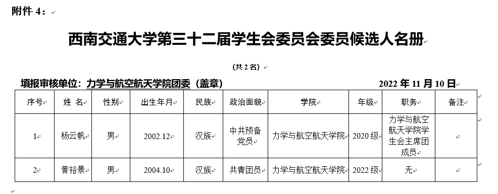 经班级(团支部)和学院学生会推荐,现将拟推荐参加beat365正版唯一官网必一第三十二次学生代表大会的代表名单与委员名单进行公示。如有异议,请于11月14日17:00前向学院团委反映,地点:X30279,电话:66366796。