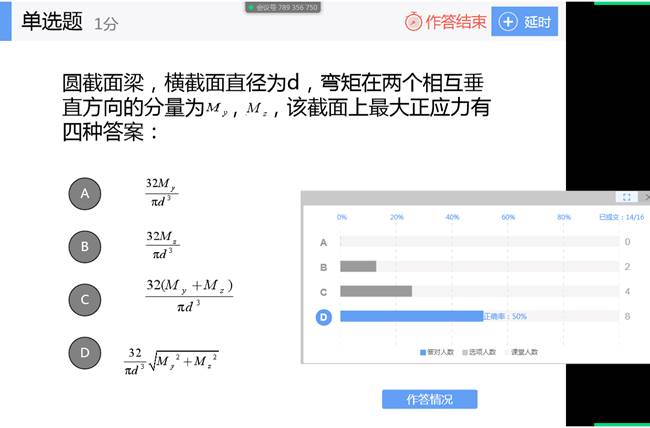 5、考虑上学期时间已算久远,又经此一疫学生记忆力注意力极度分散。在教学组织上选择了回顾上学期+引入问题+分析+例题+深入讨论这样的模式,在具体分析到深入讨论这三个环节,每个环节都通过雨课堂投放了1-3道课堂实时测试题,可以实时跟进学生的理解程度、调整讲解并增进学生跟课堂的粘性,增加其学习的主动性,减少家中学习氛围不足而产生的走神。