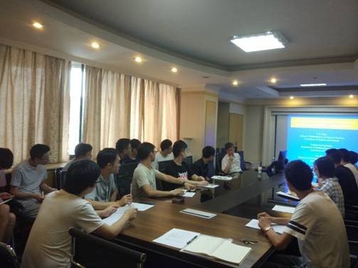 学术交流会由李燕老师主持,首先李老师对陈教授的到来表示热烈欢迎,并向参会人员详细介绍了陈清祥教授以及他的研究成果。陈清祥教授毕业于美国路易斯安那大学拉法叶分校,目前为美国南密西西比大学终身教授,担任SCI源刊物《Journal of Computers》、《Materials and Continua》的主编等。首次提出将基本解方法应用于非齐次方程的数值模拟;首次提出了Kansas类的基本解方法用于模拟其次方程;陈教授完成的著作“Discrete projection method”被认为构建了数学与工程应用之间的桥梁。陈清祥教授发表学术论文100余篇,出版数值计算方法方面的专著3部,其中《The Method of Fundamental Solutions-A Meshless Method》是第一本关于基本解方法研究的专著,它对于基本解方法的发展有着里程碑的意义。