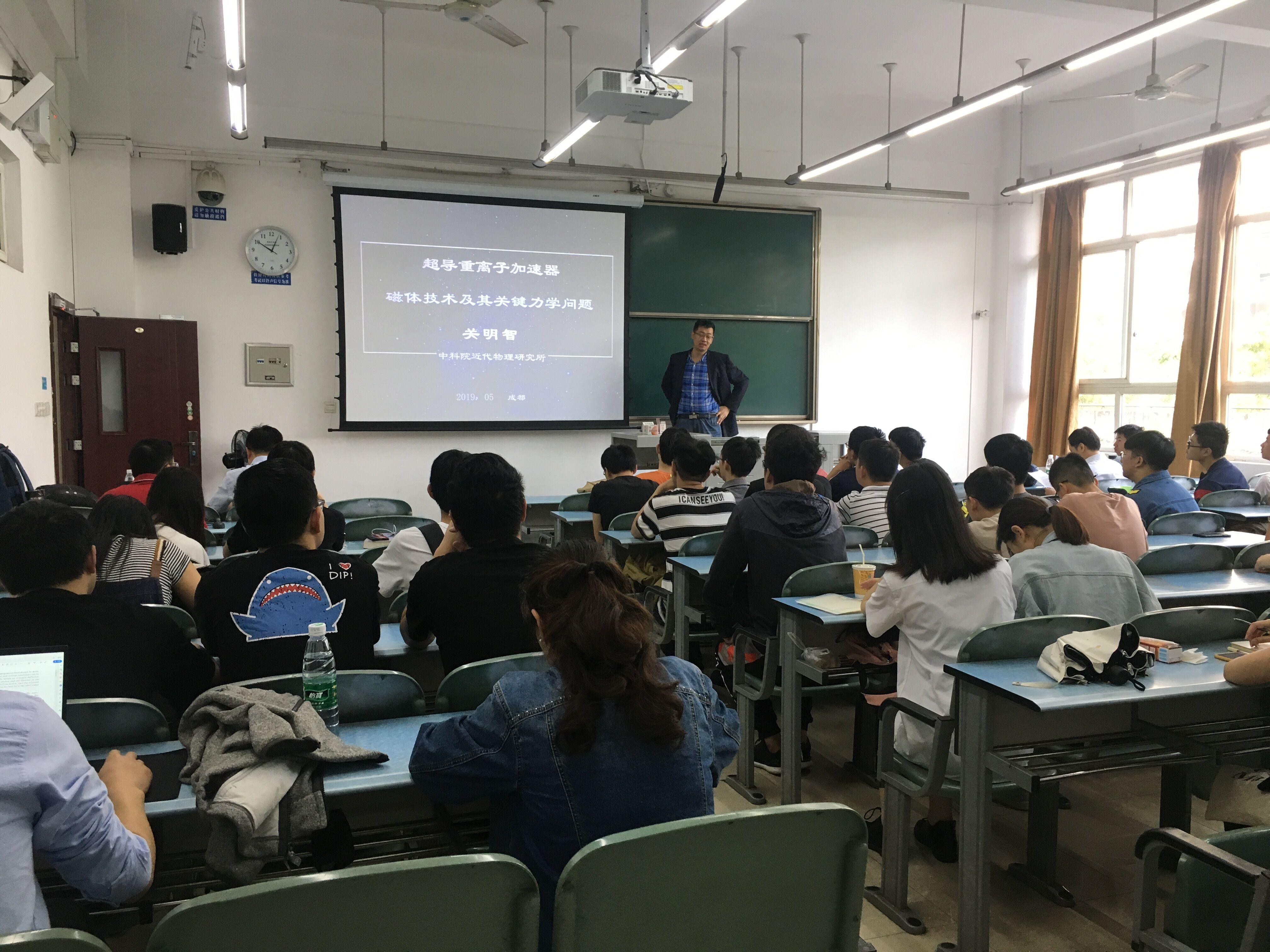 首先,关明智副研究员作了题为《超导重离子加速器磁体技术及其关键力学问题》的报告。该报告着重介绍了中国科学院近代物理研究所正在研制的强流重离子加速器及其超导磁体技术,以及力学基础研究在超导加速器磁体研制中发挥的重要作用等。