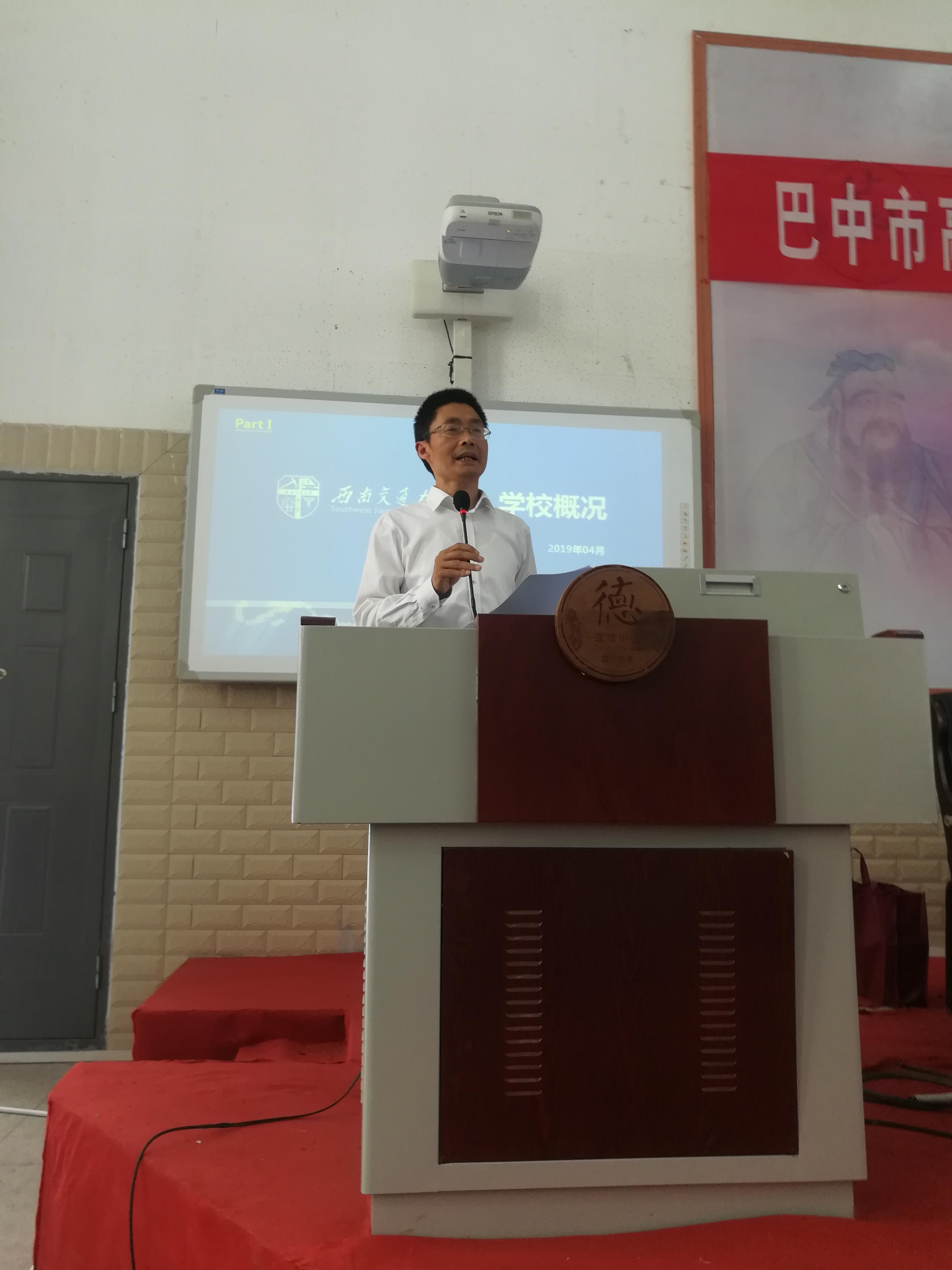 4月11日下午14:30到16:30,宣讲会首先在巴中中学龙湖校区报告厅进行。首先巴中中学王成文副校长介绍了宣讲团一行,阚前华教授代表学校对巴中中学对招生宣传的支持表示感谢,向巴中中学和高三同学赠送了展示beat365正版唯一官网必一轨道交通特色的纪念品,以此鼓励高三学子在高考中取得理想的成绩。招生宣讲主要针对巴中中学精英班学生,阚前华教授详细介绍了beat365正版唯一官网必一以及力学与工程学院的概况和招生情况,同学们就大学生活、专业选择、填报志愿等相关问题进行了踊跃提问。宣讲后,在王副校长的带领下参观下了巴中龙湖校区校园,并对优质生源基地的建设规划达成了共识。