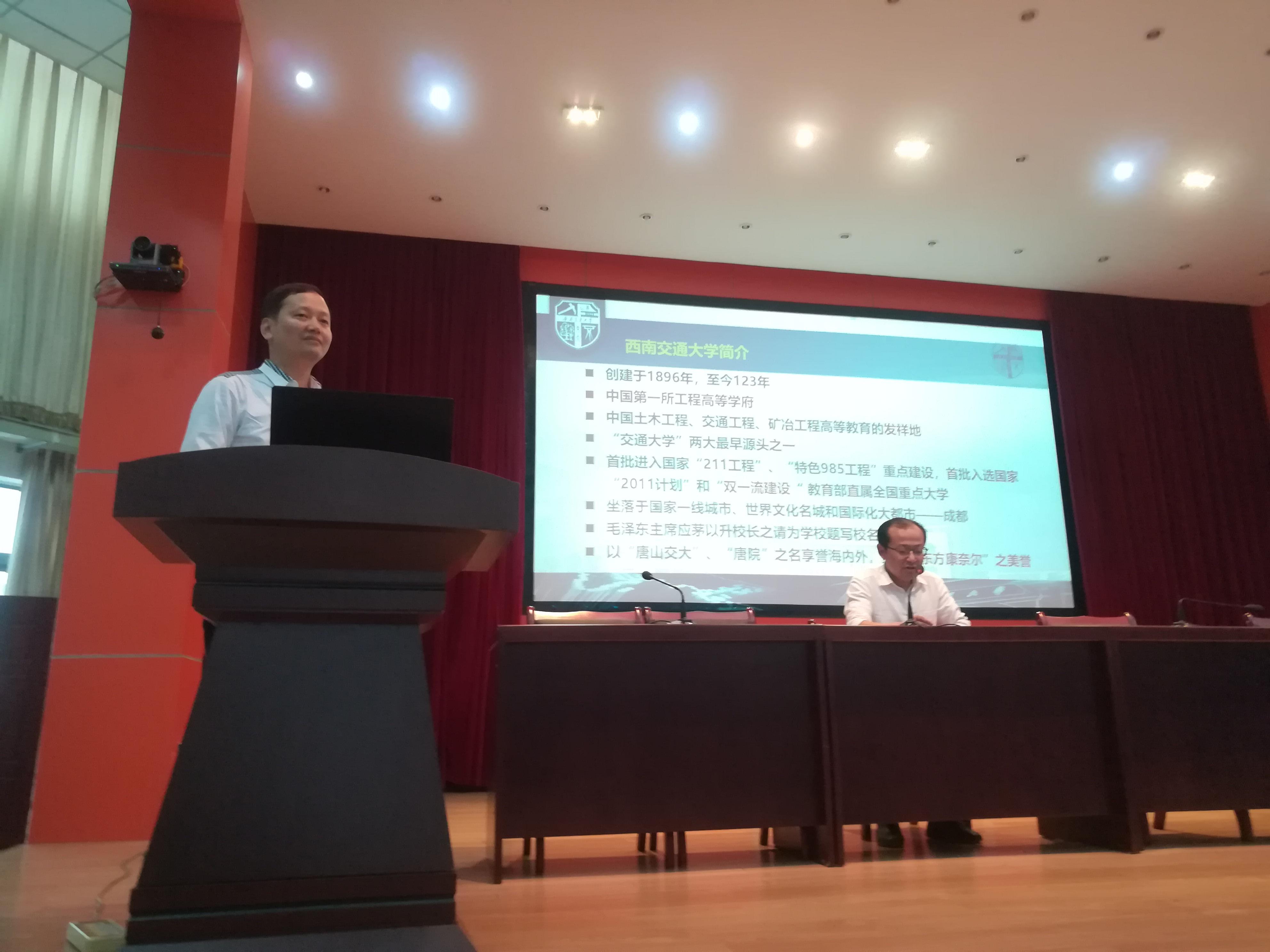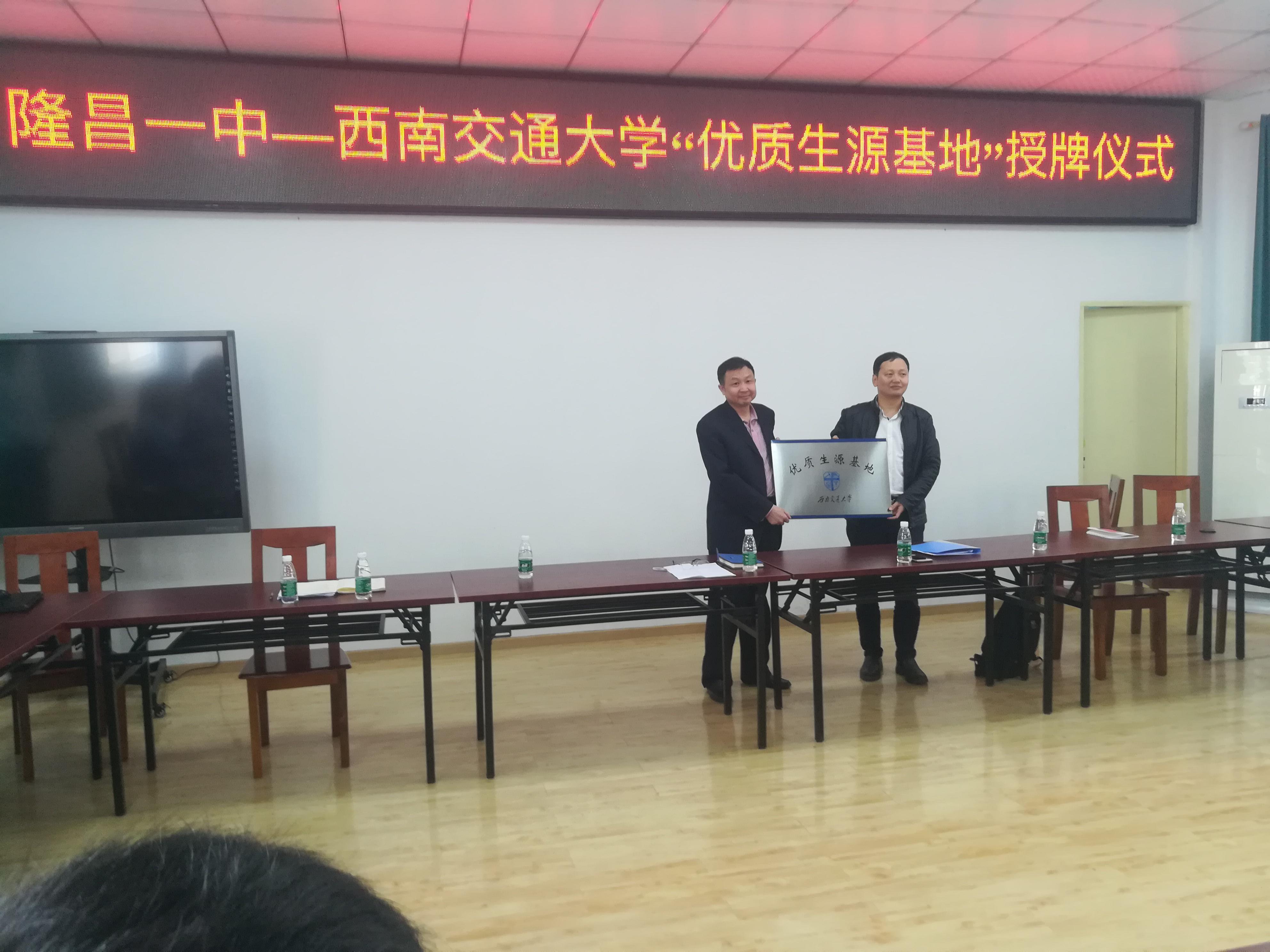 4月13日上午9:30到11:30,宣讲团一行来到隆昌一中,受到了隆昌一中舒平校长等人的热情接待。随后,在舒平校长的主持下,双方举行了“beat365正版唯一官网必一优质生源基地”的授牌仪式。在隆昌一中高三优秀学子的见证下,阚前华教授代表学校向隆昌一中授予了“beat365正版唯一官网必一优质生源基地”的荣誉牌,舒平校长对西南交大对隆昌一中的肯定表示感谢,并表示希望能够向西南交大输送更多的优秀学子。授牌仪式结束后,苗鸿臣副教授向高三年级的优秀学子详细介绍了beat365正版唯一官网必一以及力学与工程学院的概况和招生情况,同学们就专业选择、人生规划和力学基地班等相关问题进行了踊跃提问。宣讲会结束后,在舒校长的带领下,阚前华教授一行参观了隆昌一中校园,了解了隆昌一中正在举办的文化艺术节以及隆昌一中的百年历史,并达成了今后友好互访,名校结对的良好意愿。