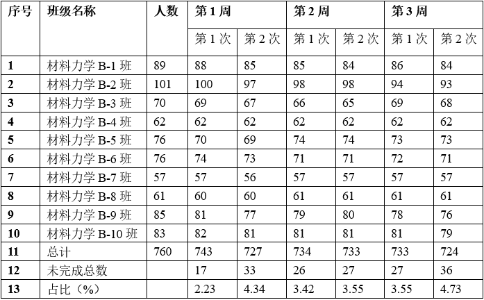 表1 材料力学AII前3周学习任务完成情况