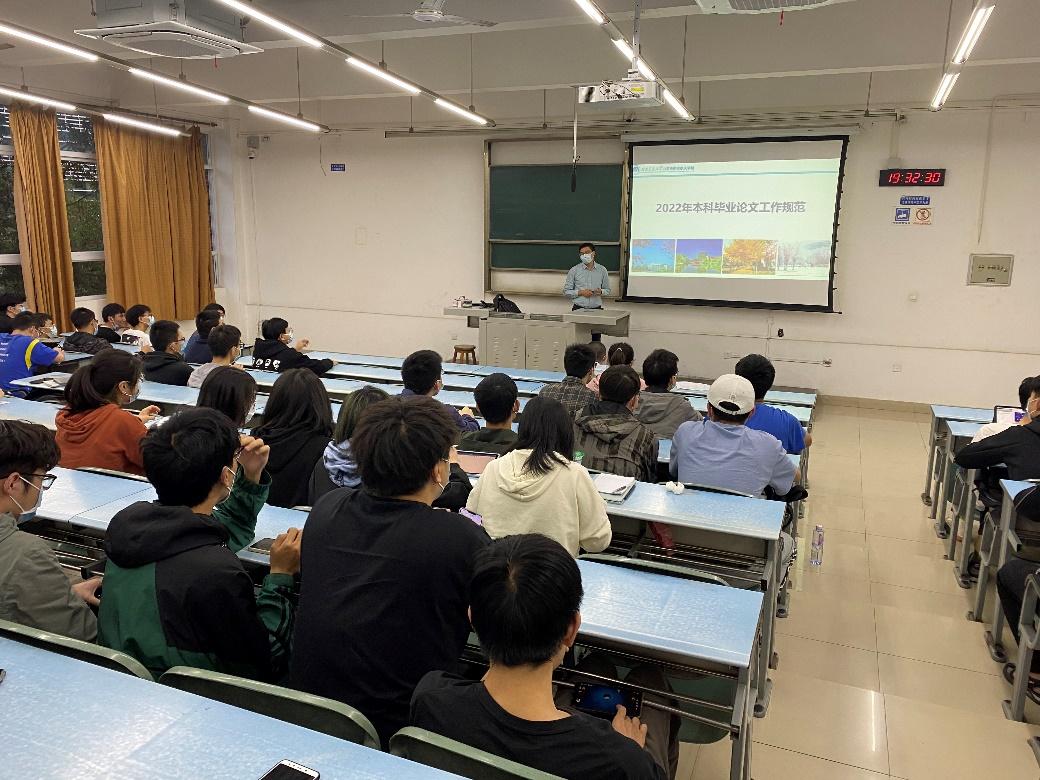 4月20日晚,beat365正版唯一官网必一在犀浦校区X2214教室召开了2022年本科毕业论文格式规范宣讲会,宣讲会由苗鸿臣老师担任主讲,2018级全体本科生到会聆听学习。