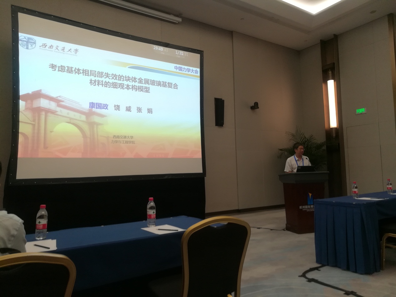 康国政教授应邀做关于“考虑基体相局部失效的块体金属玻璃基复合材料的细观本构模型”的报告