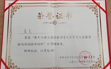 我院夏炎博士获第16届全国实验力学大会优秀墙报奖