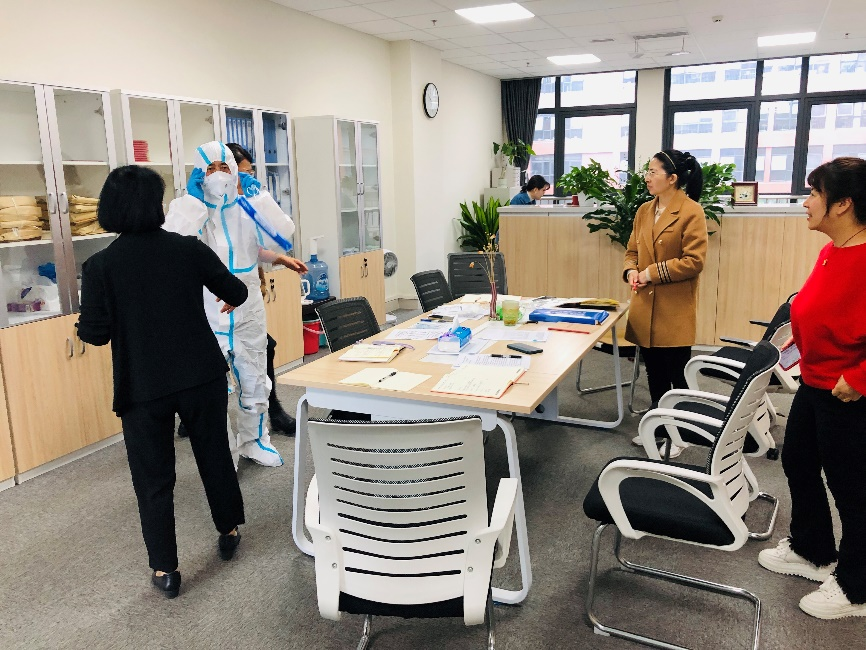 为进一步落实好学院疫情防控应急预案,在集体学习后,李宗文亲自为全体党员示范了隔离防护服使用流程。