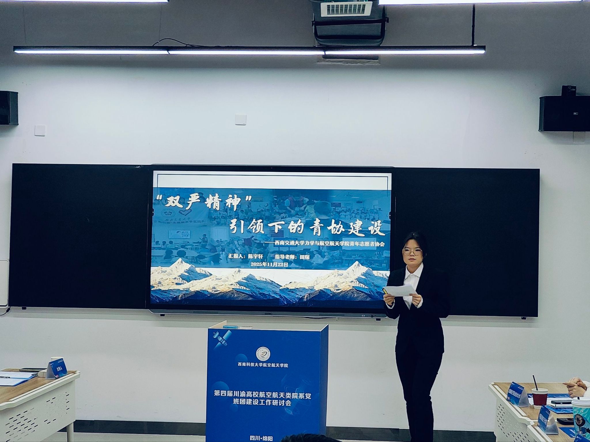 11月22日,第四届川渝高校航空航天类院系党班团建设工作研讨会在绵阳成功举办。本次会议由全国高校航空航天类院系大思政联盟、西南科技大学联合主办,西南科技大学航空航天学院党委具体承办,beat365正版唯一官网必一等10所高校航空航天类院系协同协办,以“汇聚川渝先锋力,赋能空天强国梦”为核心主题,聚焦党班团组织建设与“国防思政”“产教融合”的深度融合路径,为区域航空航天人才培养注入强劲动能。