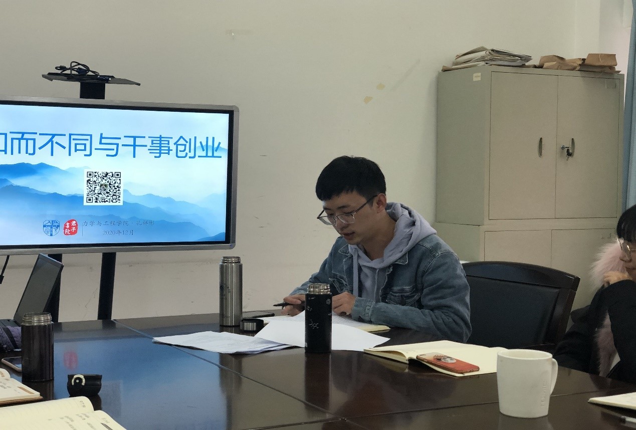 全面学习习近平总书记关于教育的重要论述后,力学学工组辅导员对此展开了热烈讨论。会议最后,孔祥彬副书记指出:辅导员老师要始终坚持以习近平新时代中国特色社会主义思想为指导,深入学习贯彻习近平总书记关于教育的重要论述,增强“四个意识”,坚定“四个自信”,做到“两个维护”,做有理想信念、有道德情操、有扎实学识、有仁爱之心的“四有”好老师,努力成为学生人生道路上的良师益友和知心朋友。
