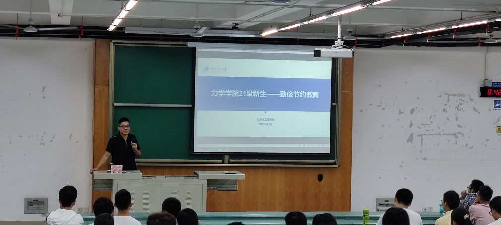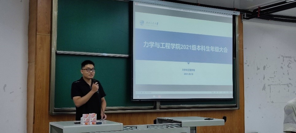 9月18日上午,力学与工程学院召开2021级本科新生年级大会,大会由辅导员王彪老师主讲。