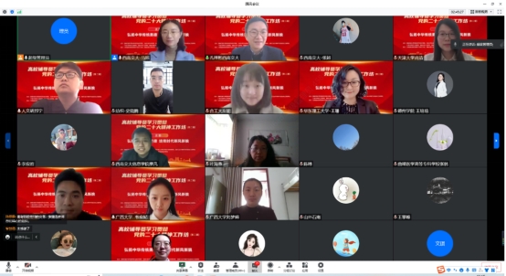 本期工作坊由beat365正版唯一官网必一信息科学与技术学院、beat365正版唯一官网必一以及南昌大学人文学院、天津大学生命学院、华东理工大学艺术设计与传媒学院、合肥工业大学电气与自动化工程学院、广西大学电气工程学院共同主办,江西省教育系统胡邦宁名师工作室、西南交大先锋力党建工作室承办。论坛通过腾讯会议线上形式举行,200余名高校学生工作者参加了工作坊。工作坊第一阶段由西南交大孔祥彬主持,第二阶段由西南交大马琼主持,南昌大学胡邦宁做了总结点评。