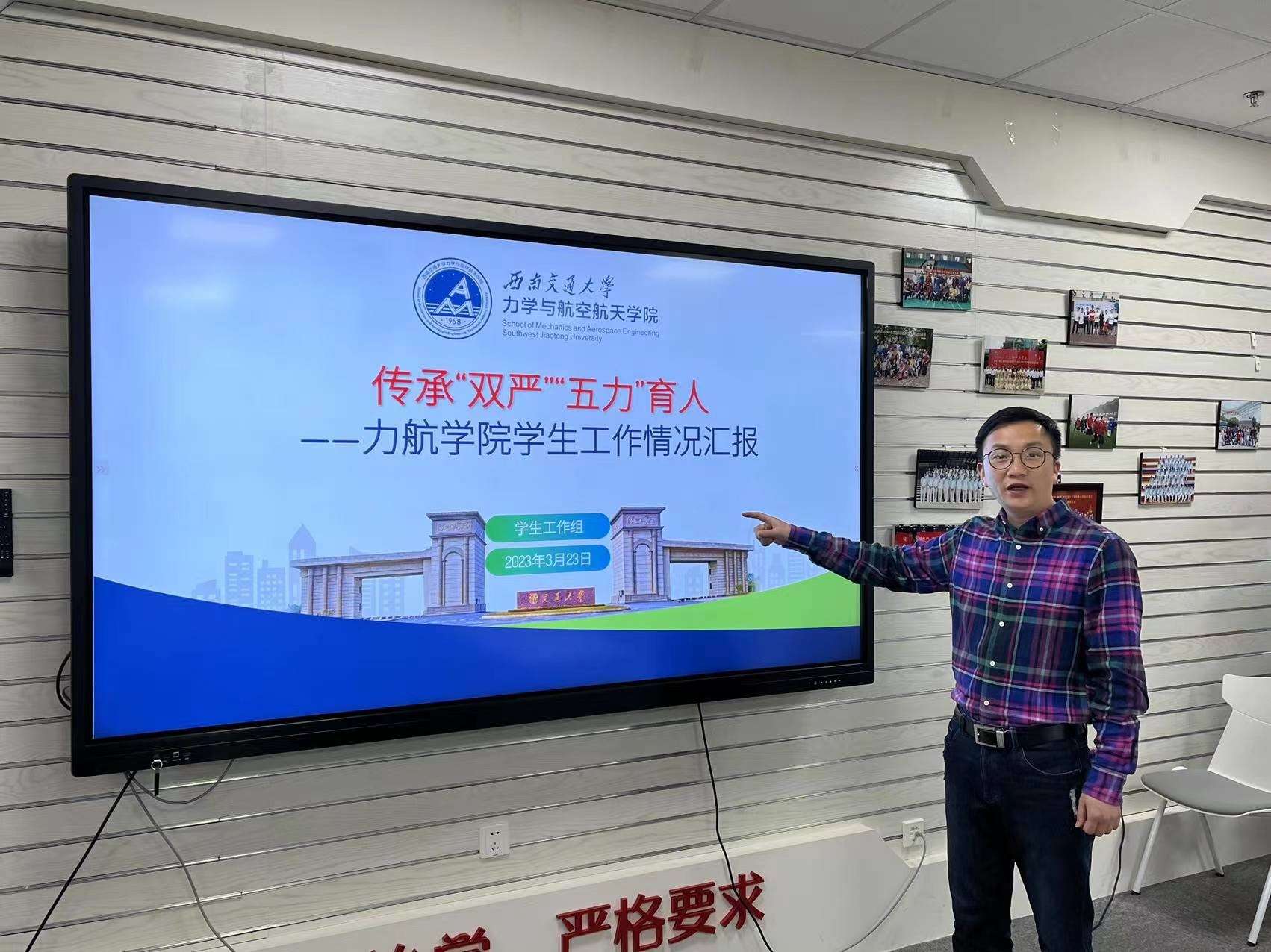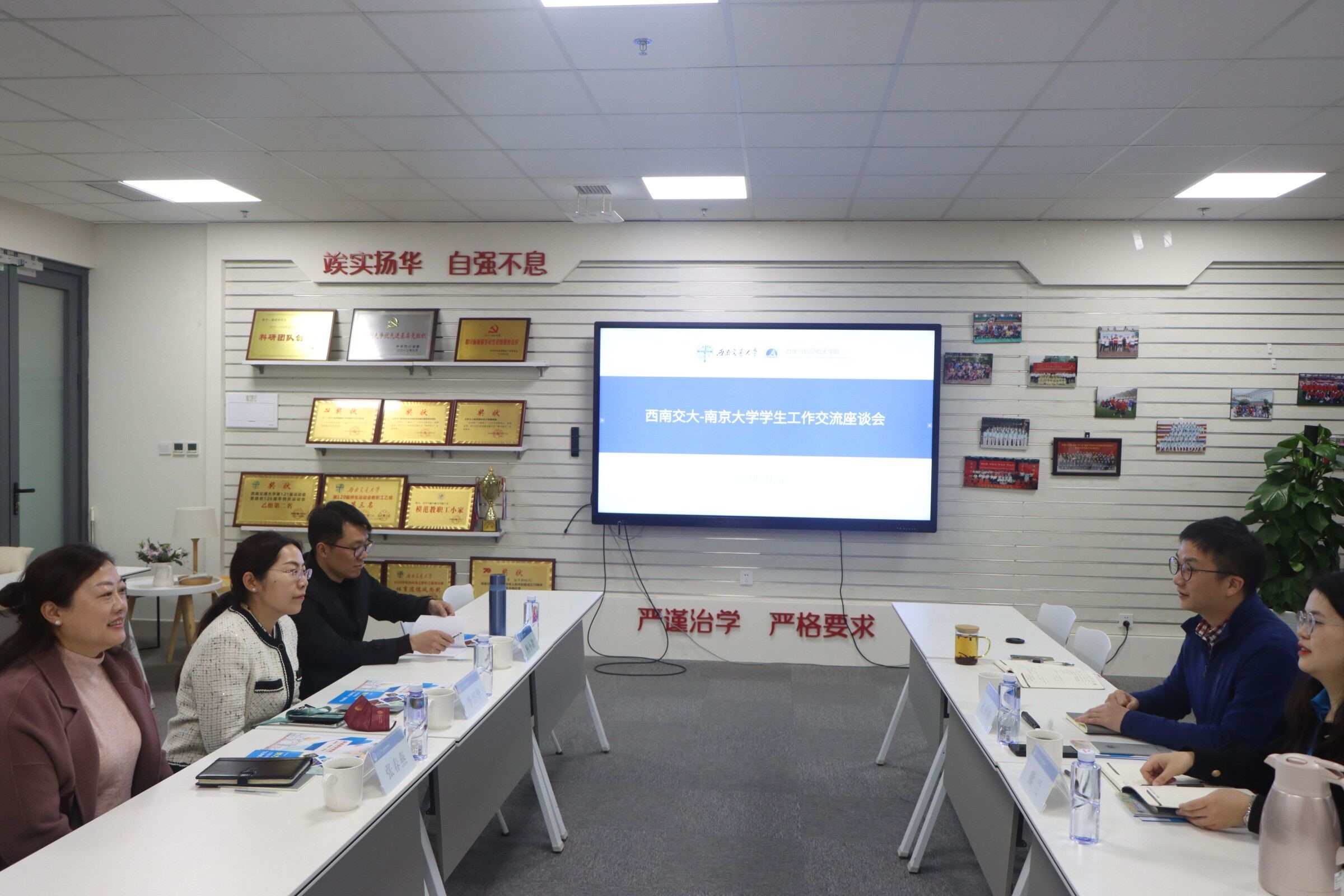 上午9:00,西南交大-南京大学学生工作交流座谈会在X30278举行。首先,孔祥彬以《传承“双严”,“五力”育人》为题向大家汇报了学院深入实施力航学工“五力育人”工程,不断提升党建先锋力、思政沁润力、学风向心力、文化影响力和协同育人力的具体做法和成效。